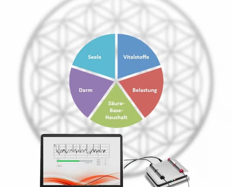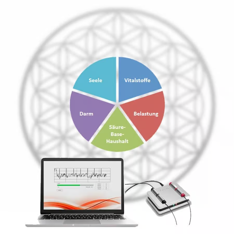 Ermittlung von Stress, Mineralien und Vitalfunktionen.